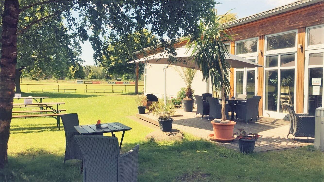 Unser Dorf- und Vereinshaus liegt in idyllischer Lage im Grünen und eignet sich hervorragend für Veranstaltungen und Feiern jeglicher Art. Unser Saal hat eine Größe von 250 m², der sich nach Bedarf in zwei kleinere Räume für eine separate Nutzung teilen lässt. Unmittelbar fügt sich eine überdachte Außenanlage an, die in den wärmeren Monaten als Biergarten oder Grillplatz genutzt werden kann. Die Sonnenterrasse lädt zum Entspannen ein. Unser Abenteuerspielplatz für unsere kleinen Gäste ist großräumig angelegt und befindet sich in Sichtweite vom Gastraum. Parkplätze gibt es in ausreichender Anzahl unmittelbar vor der Anlage.